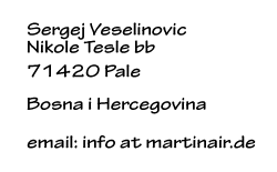 martinair.de ist eine rein privat betriebene Internetpräsenz die in keineweise Onlinehändler ist. Die Webseite steht 100% unentgeltlich zur Verfügung und es werden keinerlei Einnahmen durch Werbeeinblendungen oder Hinweise auf eventuell genannte Veranstaltungen erzielt. Die Veranstaltungshinweise auf kommerzielle Veranstaltungen sind dem privaten Bereich zuzuordnen (vgl. Urteil des Landgerichts München I vom 28.11.2007 Az. 1HK O 22408/06).